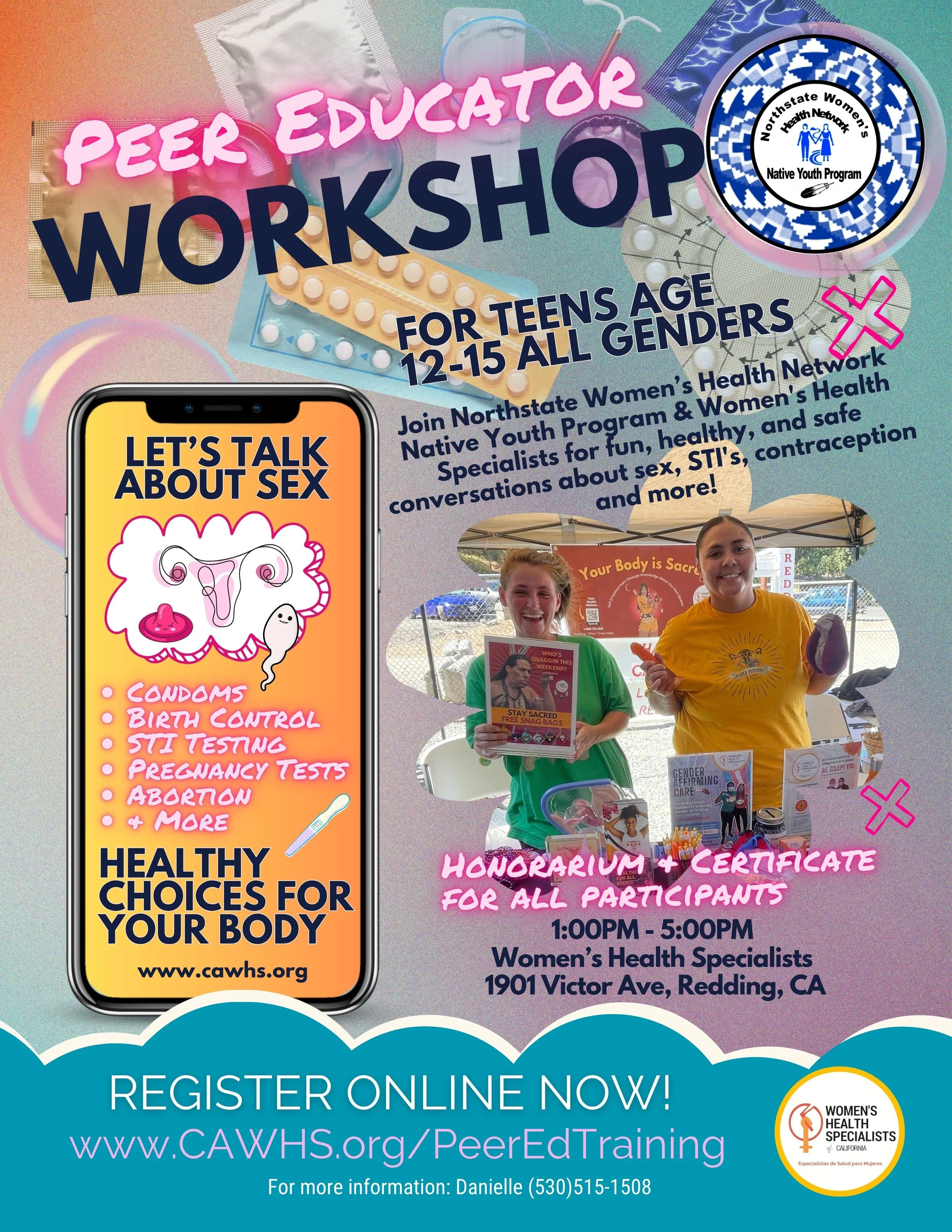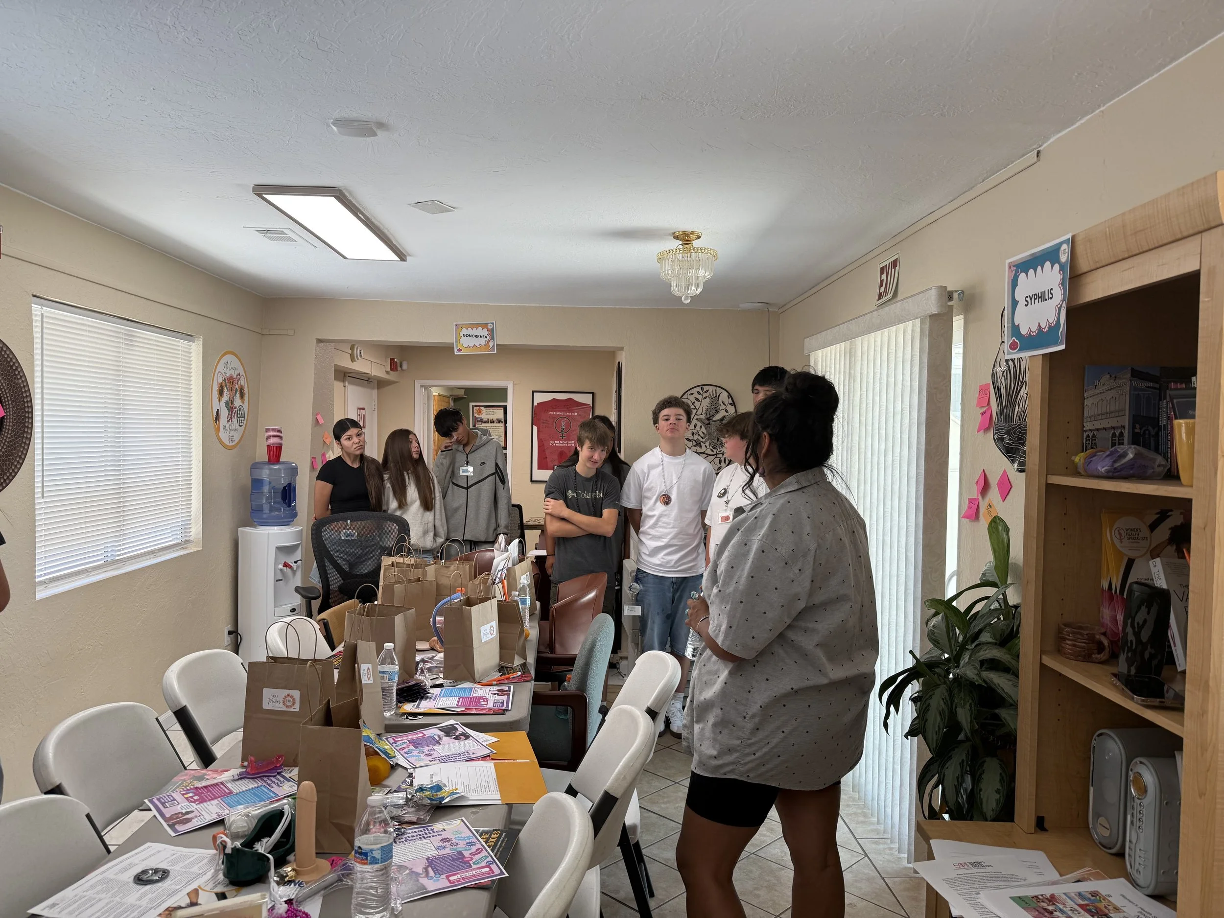 Native youth are trained in peer to peer educational settings through engaging activities and conversations. Participants learn about sex, STI/HIV, contraceptives, abortion, gender affirming care, pregnancy screenings, testing and treatment, along with youth rights, accessing clinical services and more.